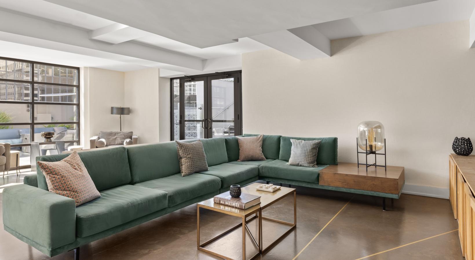 • a living room with a green couch