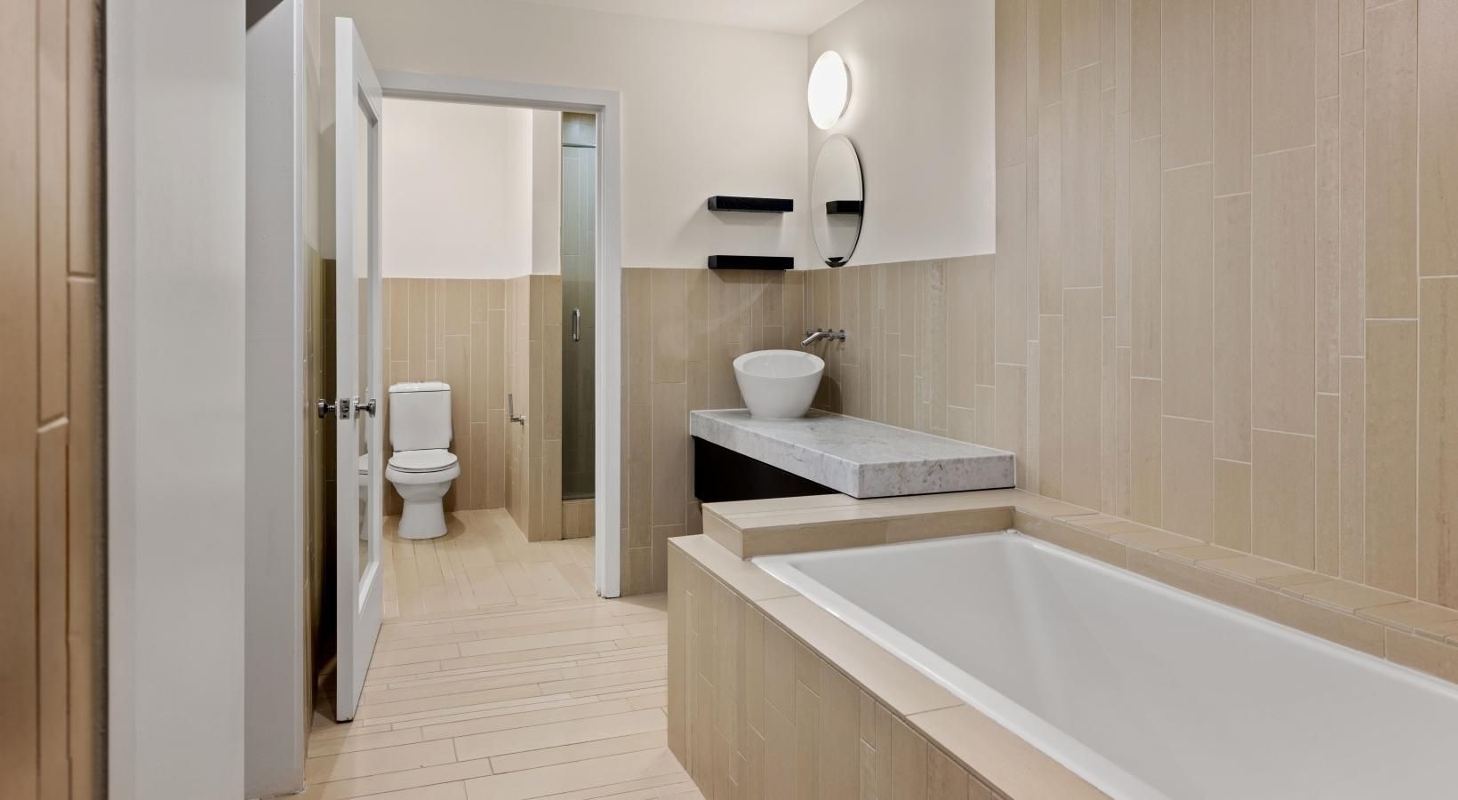 • a bathroom with a tub and sink