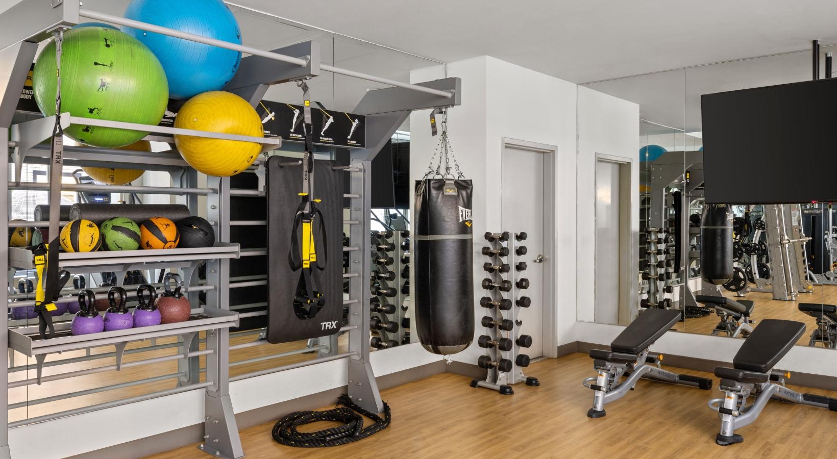 • a gym with exercise equipment