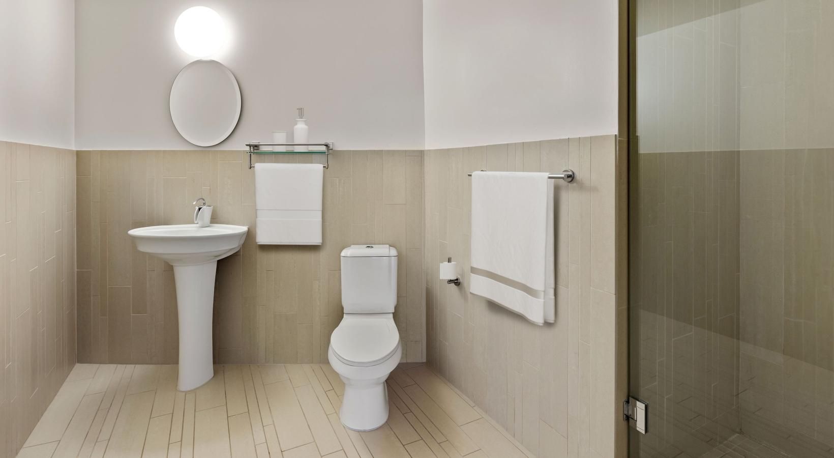 • a bathroom with a toilet and sink
