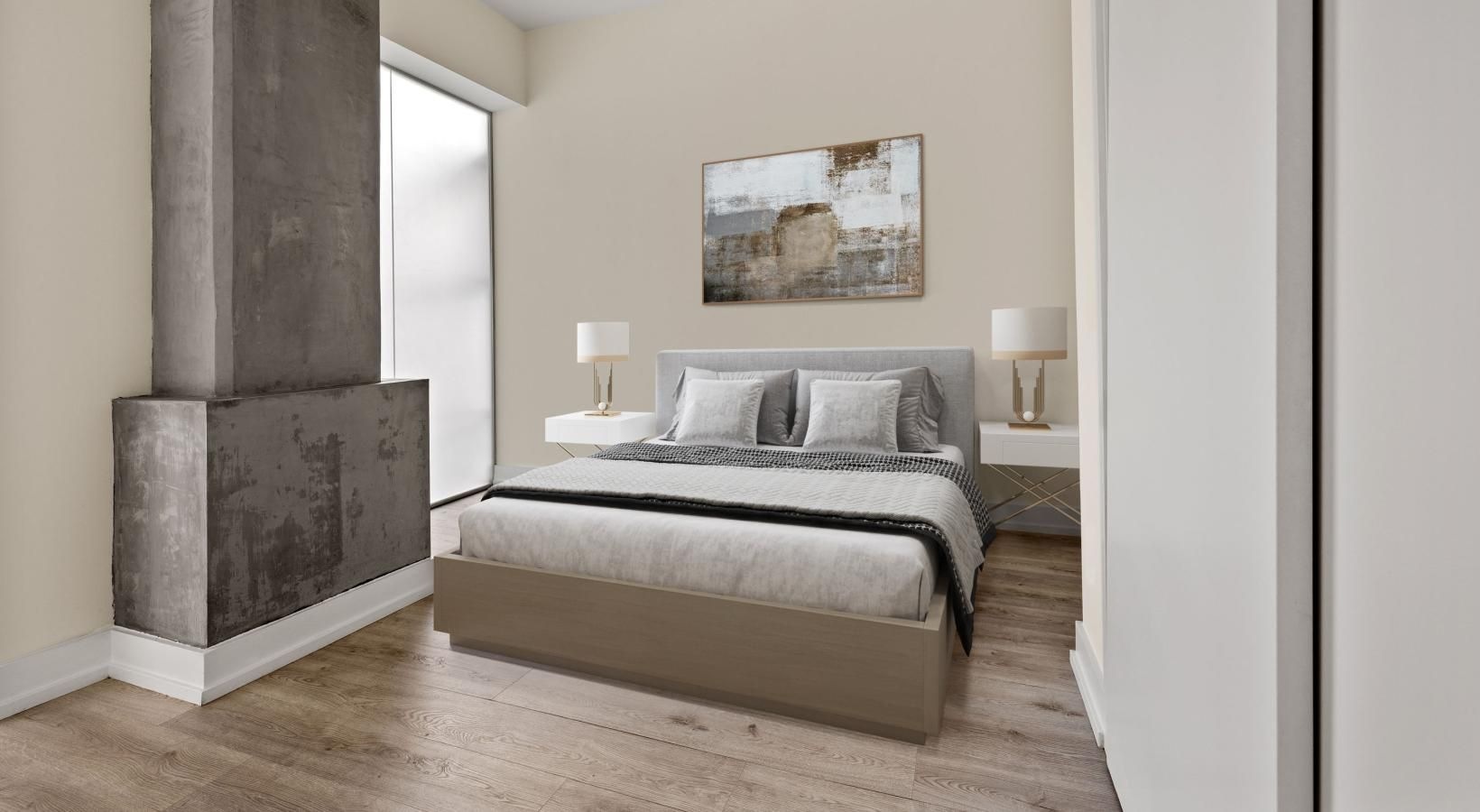 • a bedroom with a large window